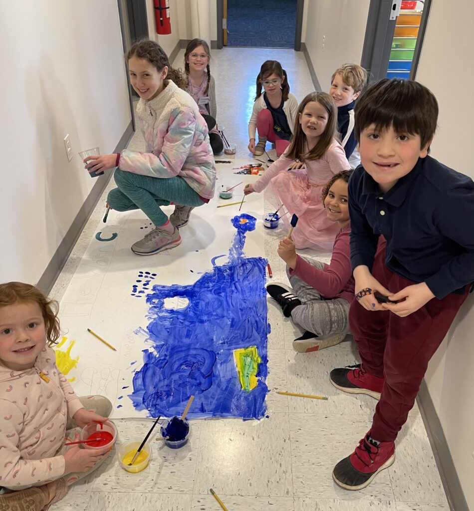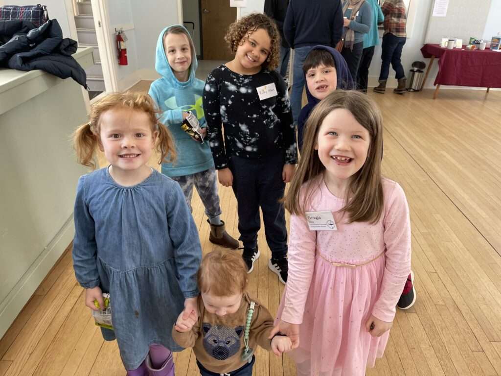 Children and youth begin in the Sanctuary with adults at the start of each service. Many services include a time when children (and anyone young at heart!) gather for a “Story for All Ages.” After the story, the congregation sings the children and their RE leaders out to their religious education classes, which last until the worship service concludes around 10:30 am. The kids then join their grownups upstairs for coffee hour and a snack.